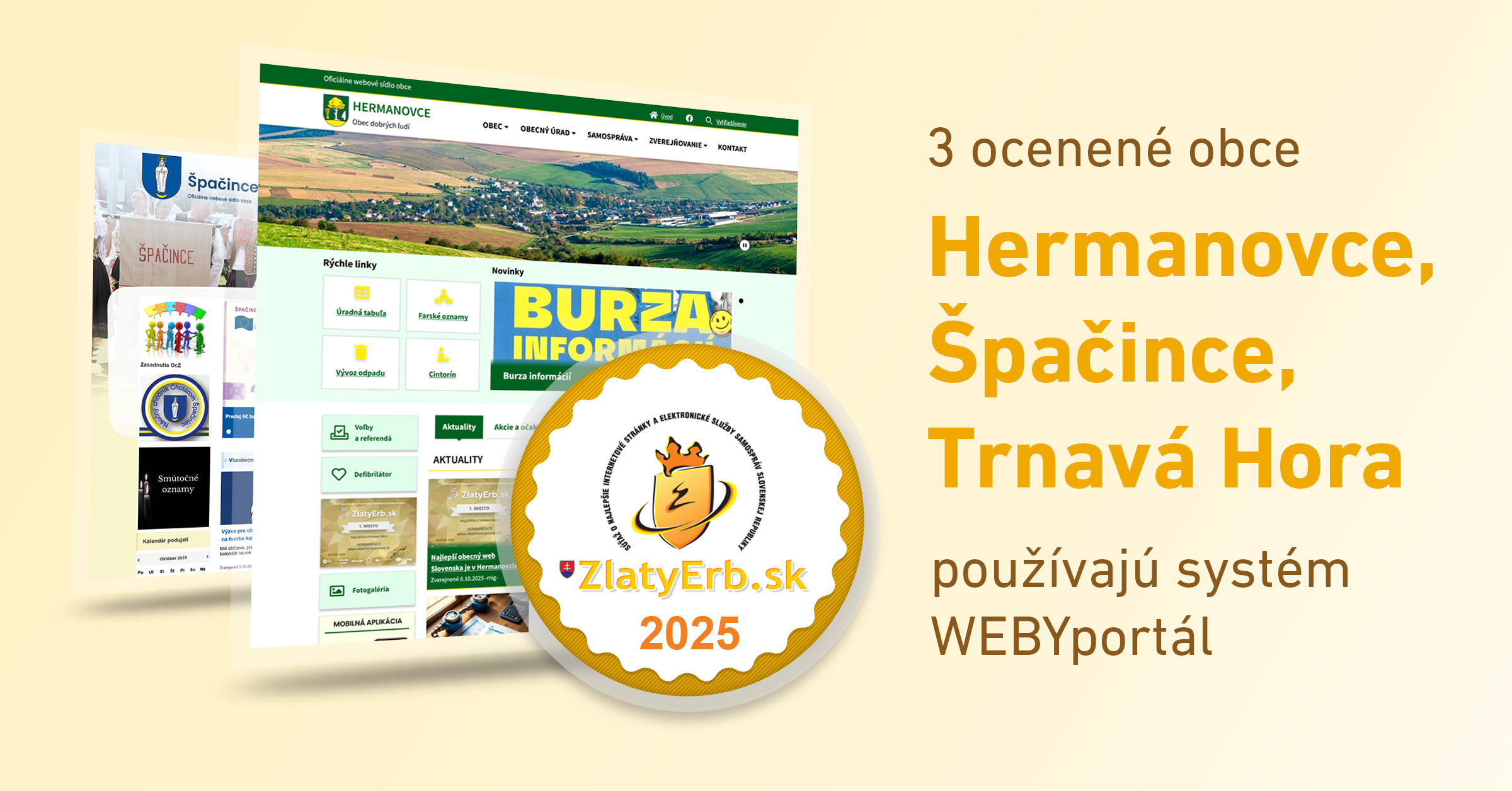 Máme radosť, že aj v roku 2025 uspeli v súťaži ZlatyErb.sk webové sídla postavené na redakčnom systéme WEBYportál.
